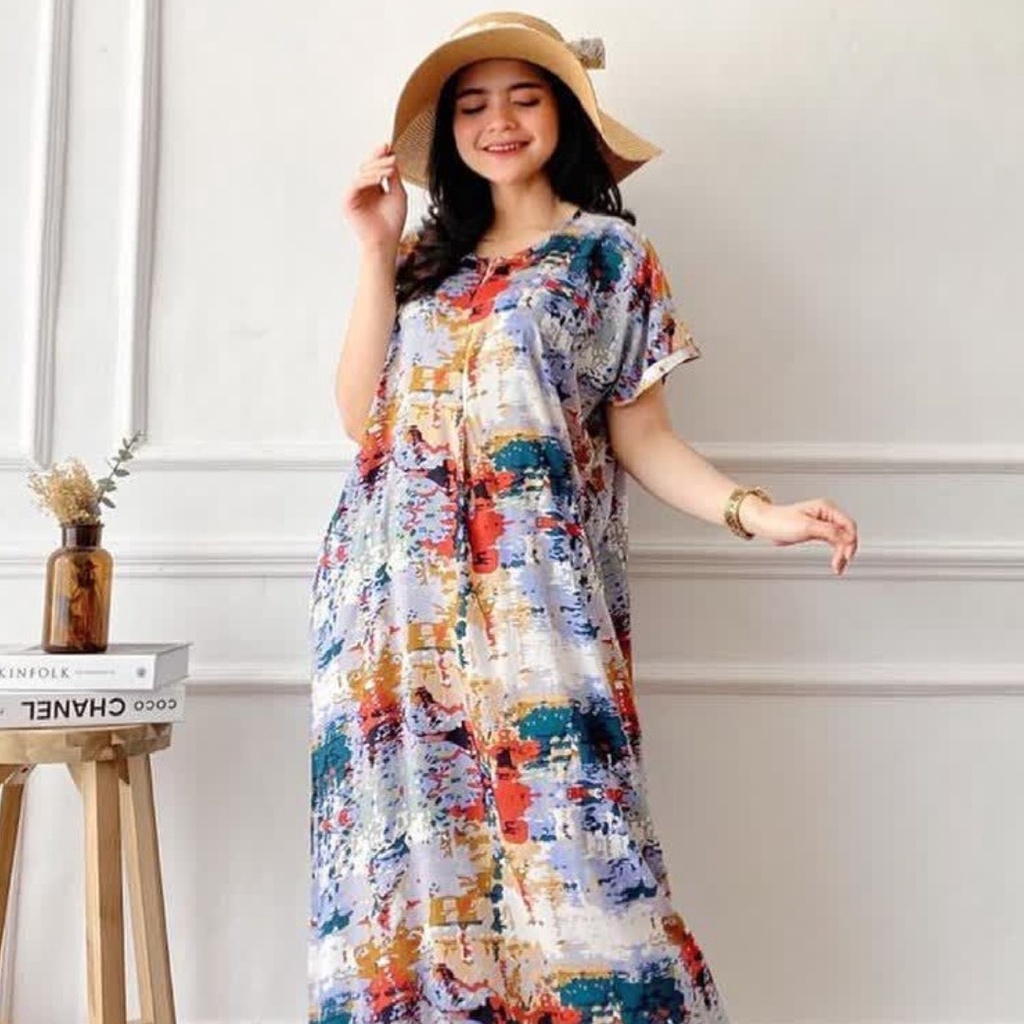 Daster Gamis Semata Kaki / Long Daster Lengan 3/4 / Daster sematakaki busui / Daster tangan / Daster rayon busui
