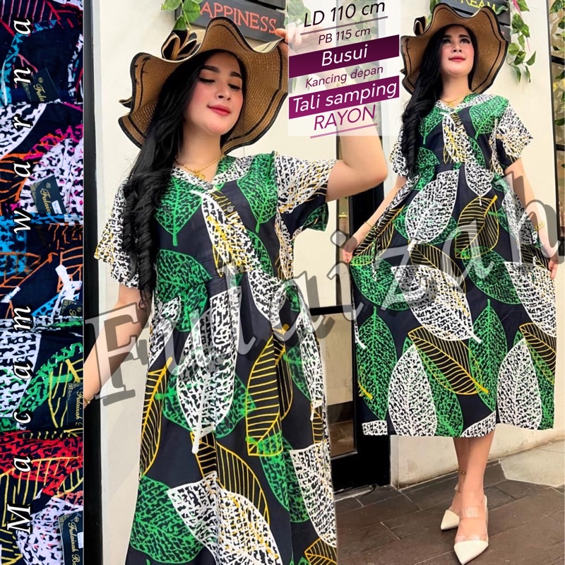 IZANY DASTER Dress Zipper JUMBO XXL banyak Motif bahan apple
