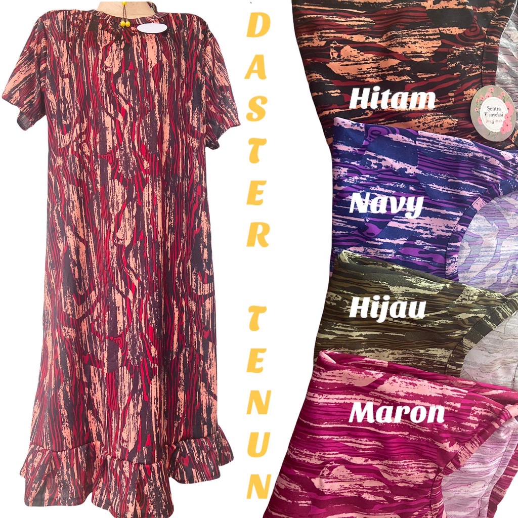 Produk ini memiliki 20 Variasi Warna yaitu : DSTR FLOWER HITAM,DSTR NAIMA MARON,DSTR MAUDY BIRU,DSTR TENUN HIJAU,DASTER TENUN MARON,DSTER SAKURA DUSTY,DSTER SAKURA HITAM,DSTER DAISY PUTIH,DASTER BUNGA HITAM,DASTER DAISY HITAM,DASTER MAUDY DUSTY,DASTER SAKURA NAVY,DASTER MAUDY HITAM,DSTER BUNGA NAVY,DASTER MAUDY MOCCA,DASTER JEMIMA MUSTAR,DASTER SAKURA GREY,DASTER JEMIMA NAVY,DASTR BUNGA KUNING,DASTER BUNGA BIRU,