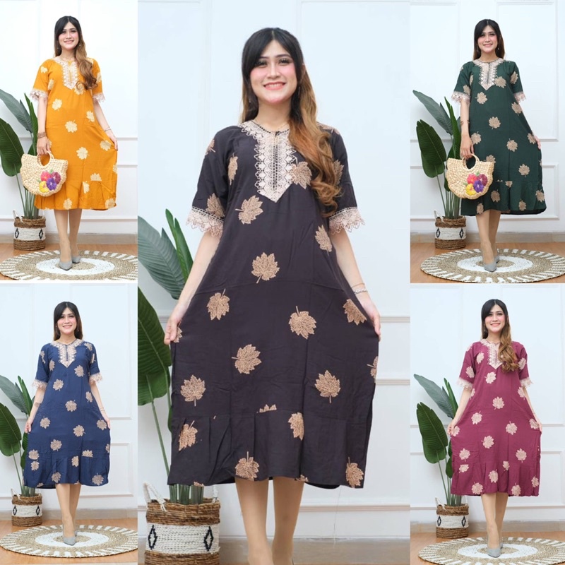 Daster Jumbo Arab LD 120 Lengan Pendek Motif Daun | Daster Arab Renda Jumbo