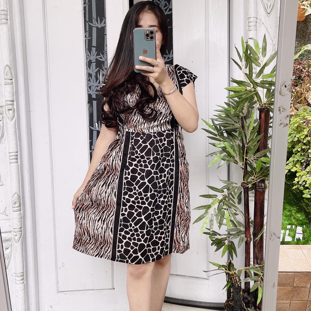 IZANY DASTER Dress Zipper JUMBO XXL banyak Motif bahan apple